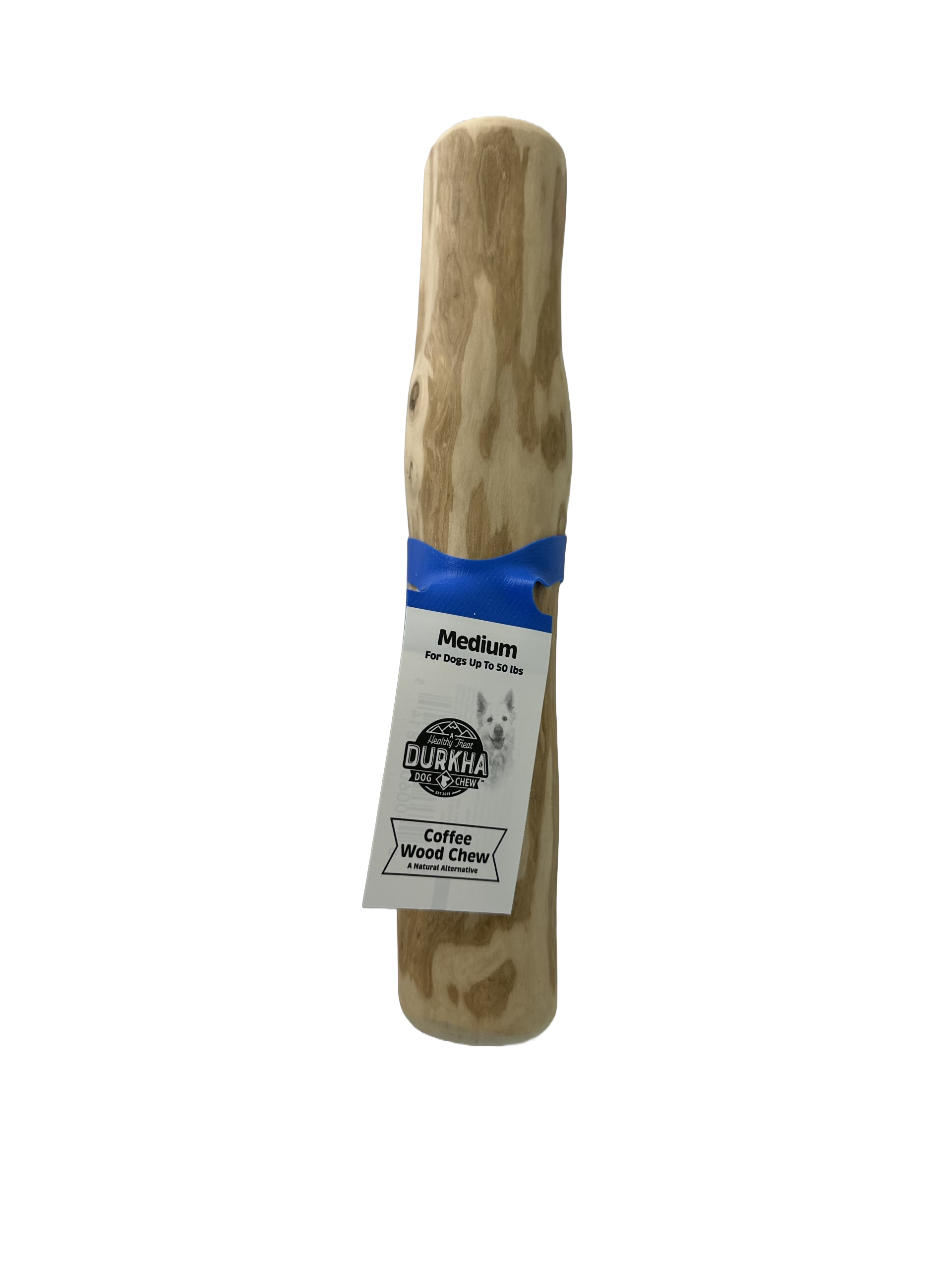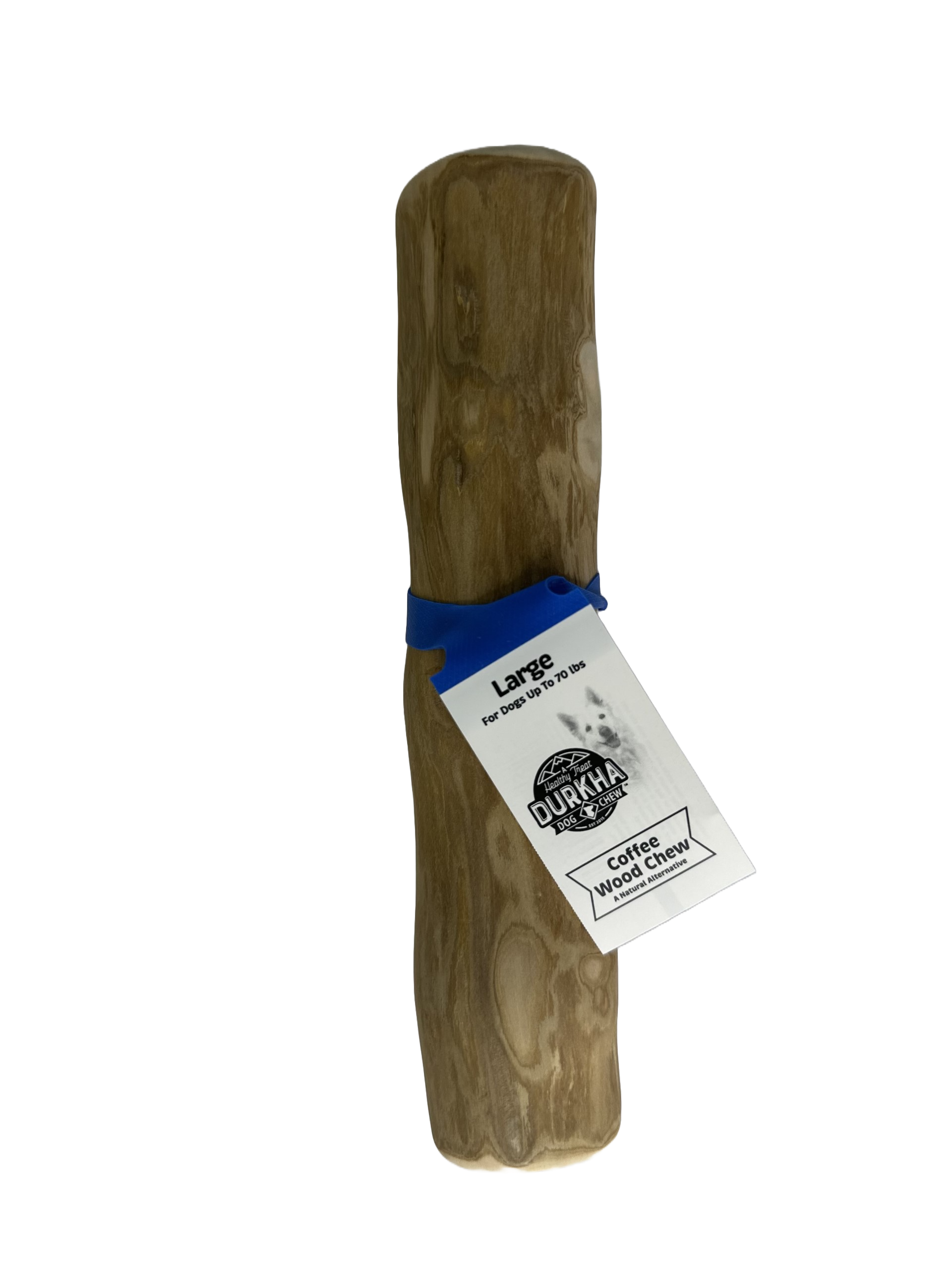 Durkha Coffee chew sticks are made from the best materials mother nature has to offer. Coffee wood is an ideal resource for dog chewing sticks. It is a lot harder than other wood, which is why our sticks are particularly resilient. And since it is the only ingredient in our Durkha sticks, our products are 100% vegan and free from any harmful additives.